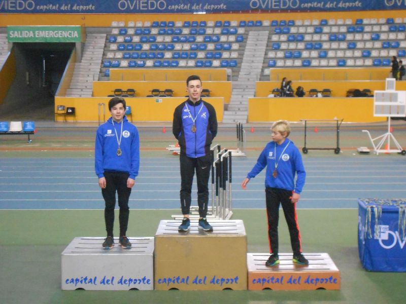 CAMPEONES DE ASTURIAS: Alejandro Álvarez (cadete) (altura/1’73) , (longitud/5’80), (triple/12’54) y (60 vallas/9.30), Rubén Naya (cadete) (pértiga/2’25), Alejandro Torres (cadete)(60 m.l/7.62)